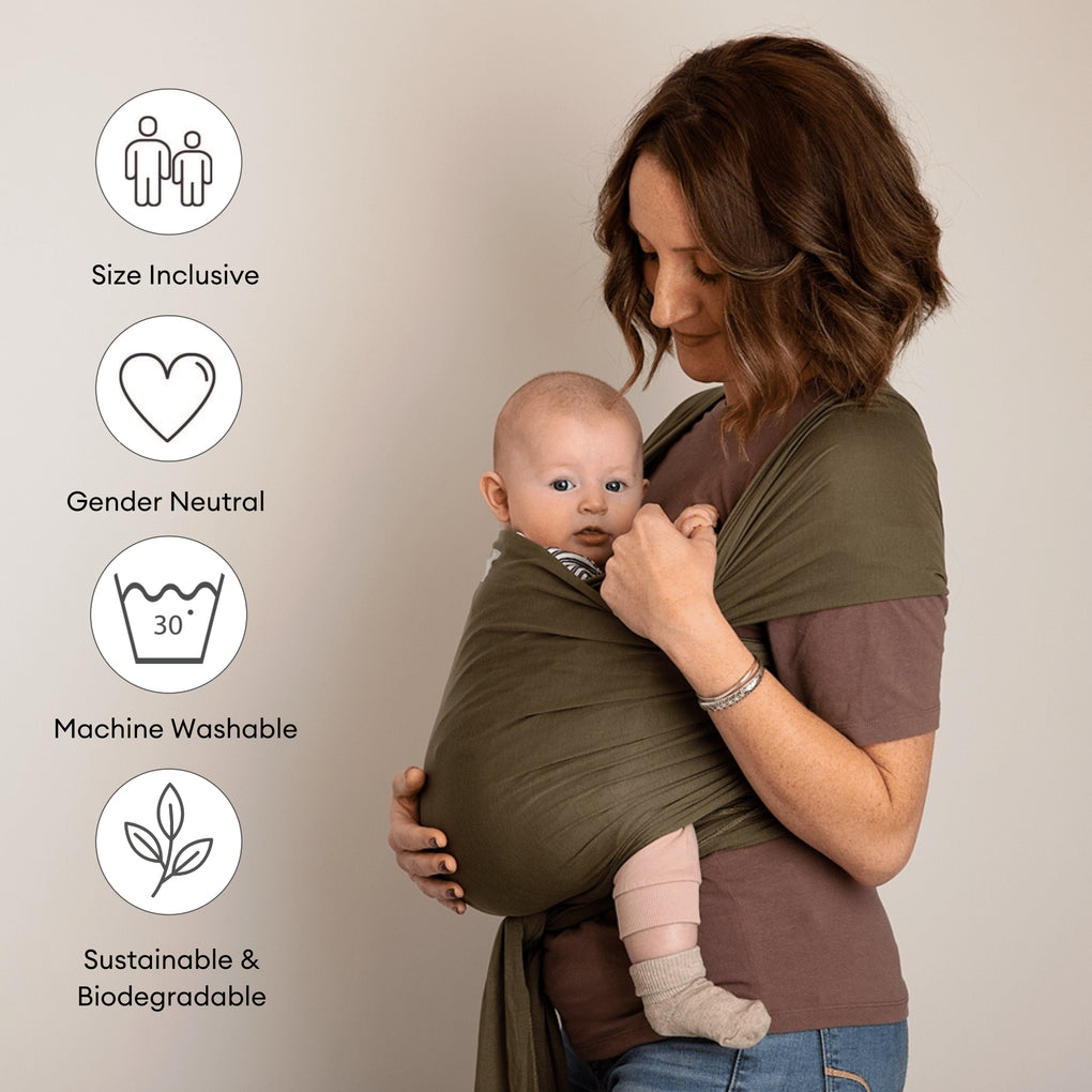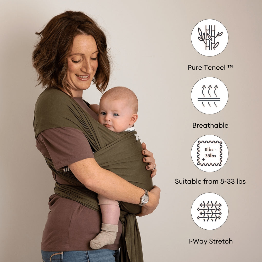 From the moment you bring them home, you can enjoy hands-free carrying with your baby for as long as you need to. Made using beautifully soft, eco-friendly Tencel™ with easy-to-use 1-way stretch fabric, our baby sling is ergonomic, lightweight, durable, breathable and machine washable.