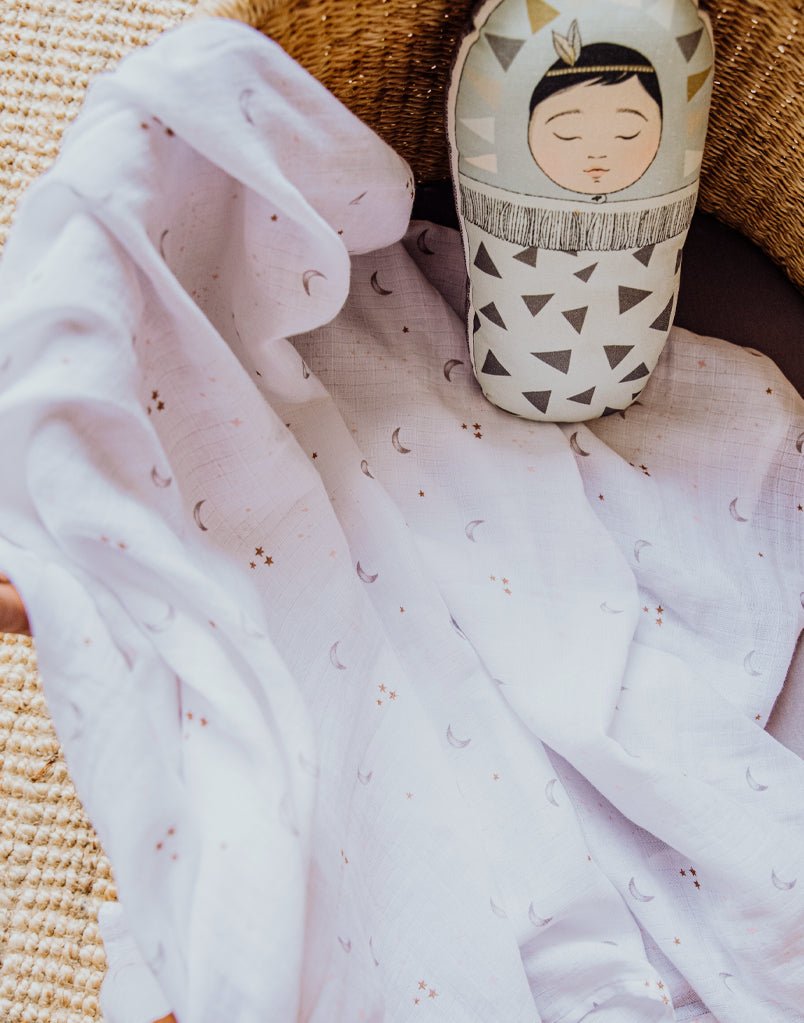 • 1 pre-washed, luxuriously soft organic cotton swaddle that gets softer after every wash