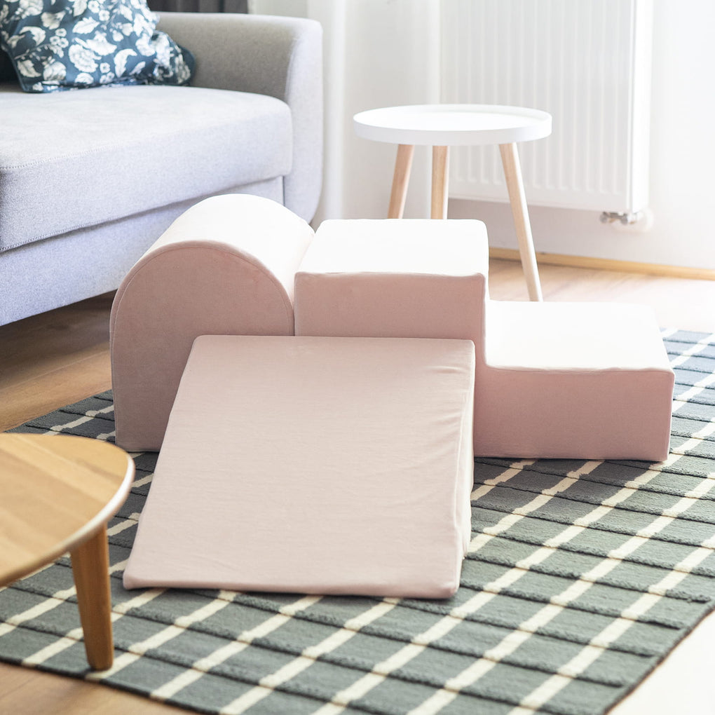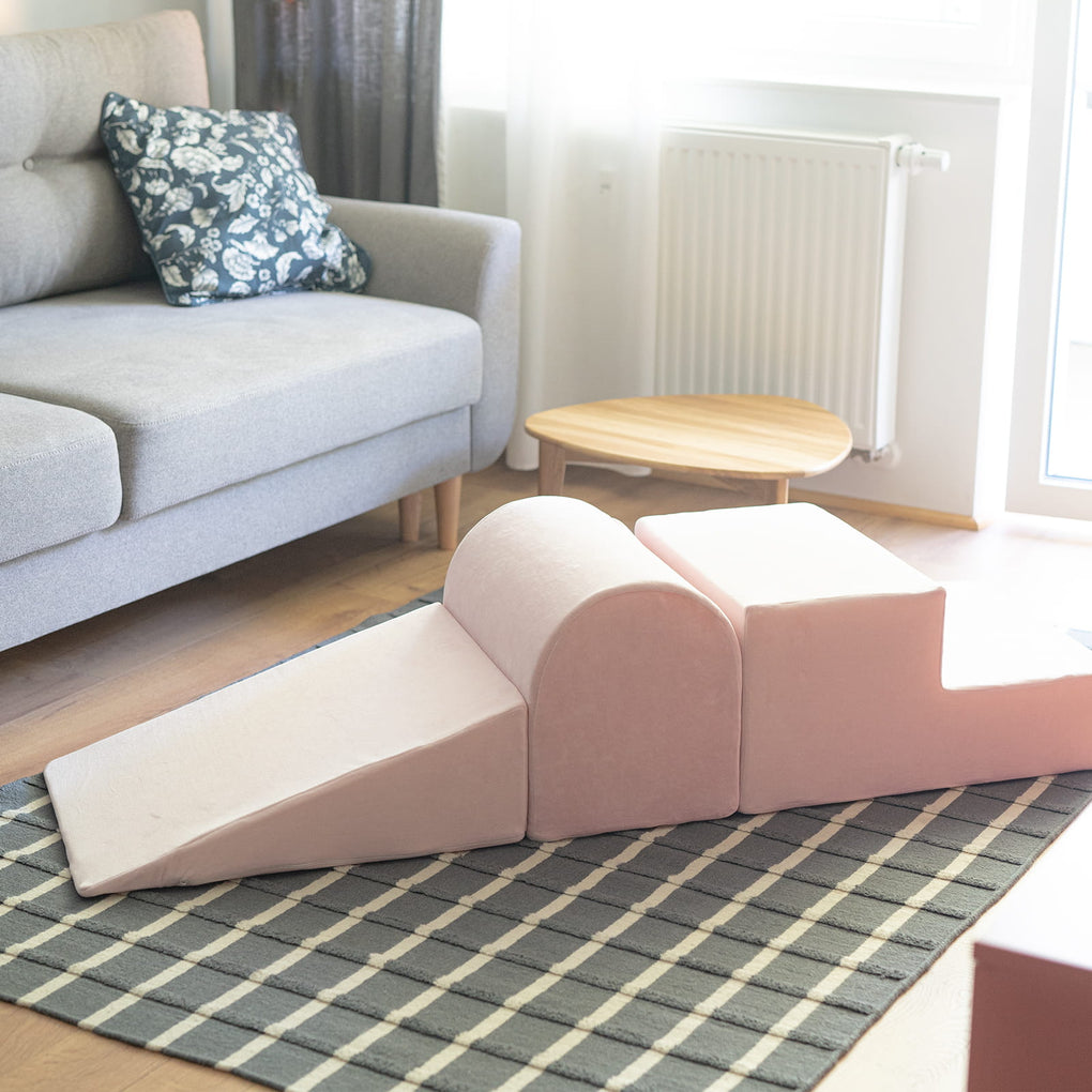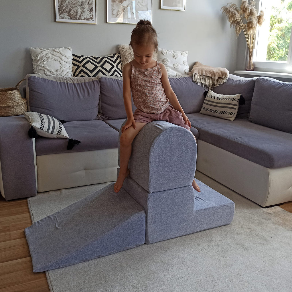 The foam play set is a perfect part of equipment for the nursery, playing grounds, but, first of all, due to the cover extreemly pleasant to touch– also for children rooms. The simple and minimalistic desgin of this product makes it perfectly fit into the home space.