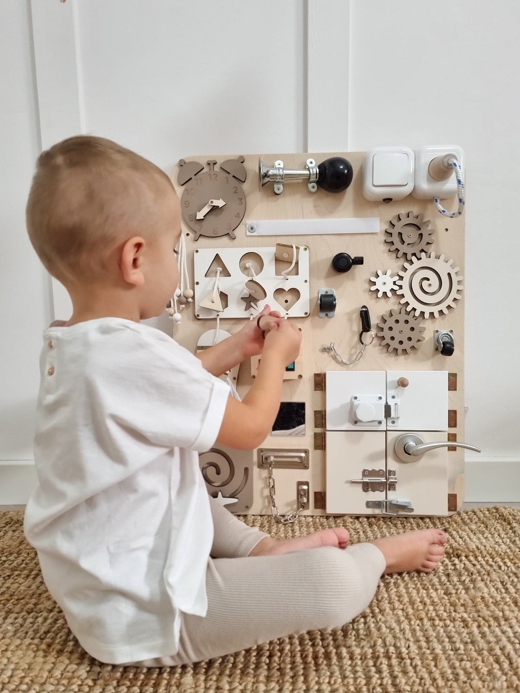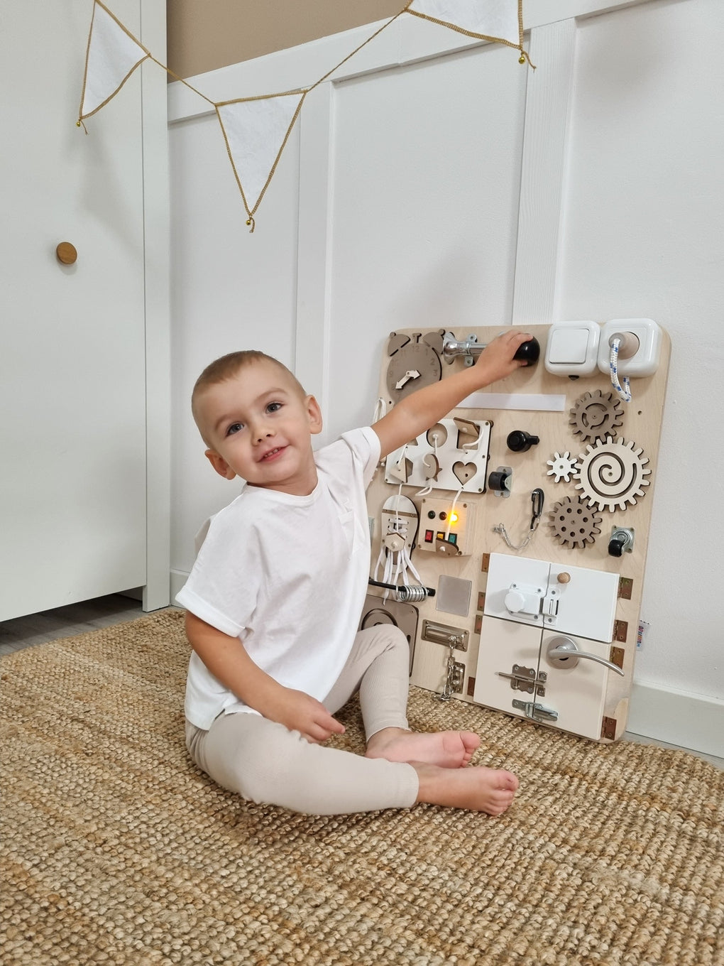 The Woobiboard Premium PLAY Bohema provides the perfect Montessori sensory learning experience for young children. Crafted from high-quality and sustainable materials and finished with safe non-toxic paints, these beautiful wooden busy boards encourage exploration and development of fine motor skills.