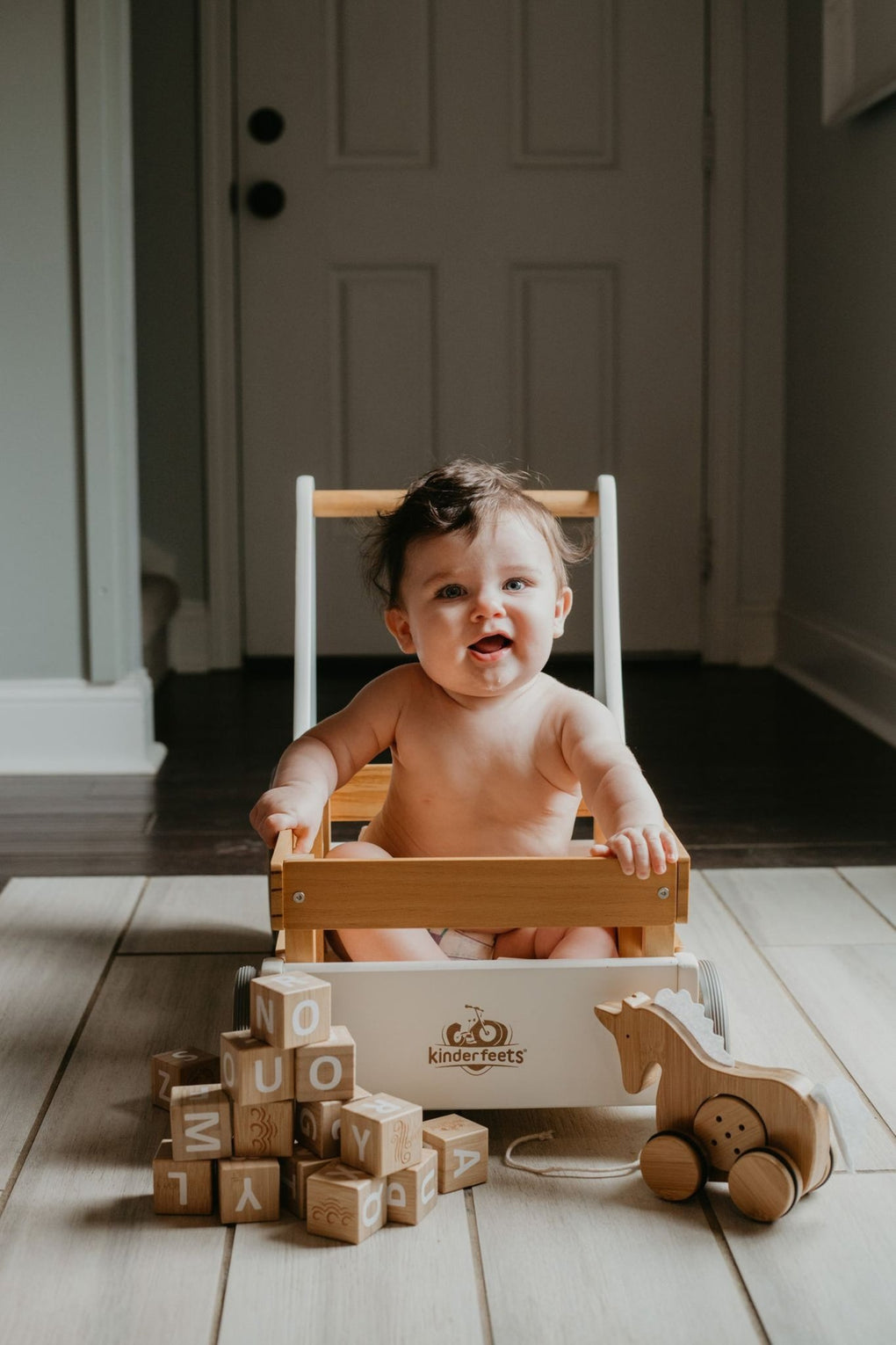 is your little one starting to explore the world on their own two feet? If so, introduce them to the versatile fun of the kinderfeets cargo walker - a toy that serves as both a storage wagon for toys and stuffed friends and a walker for newly-mobile children.