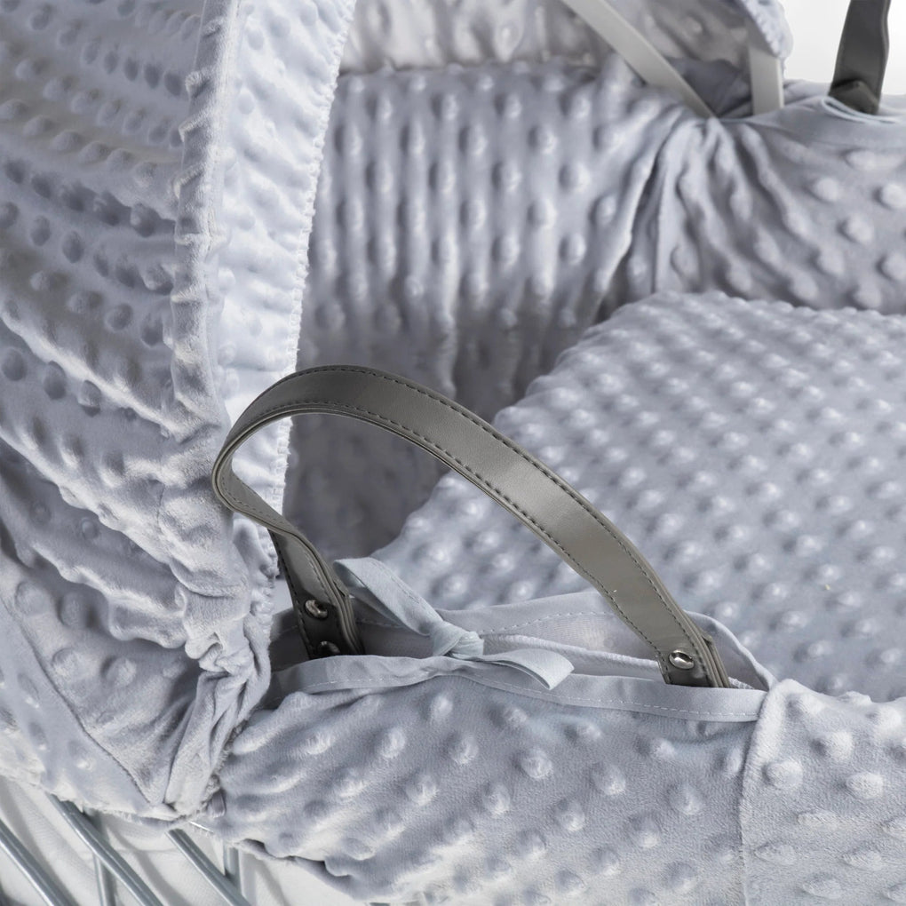 Clair de Lune Dimple Grey Wicker Moses Basket With Grey Rocking Stand – Hugo & Me