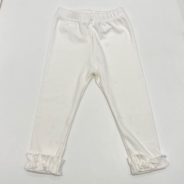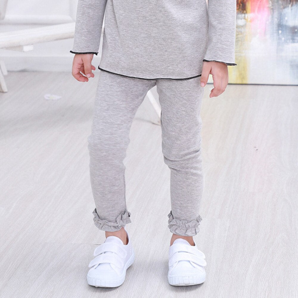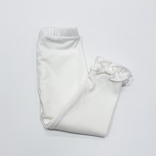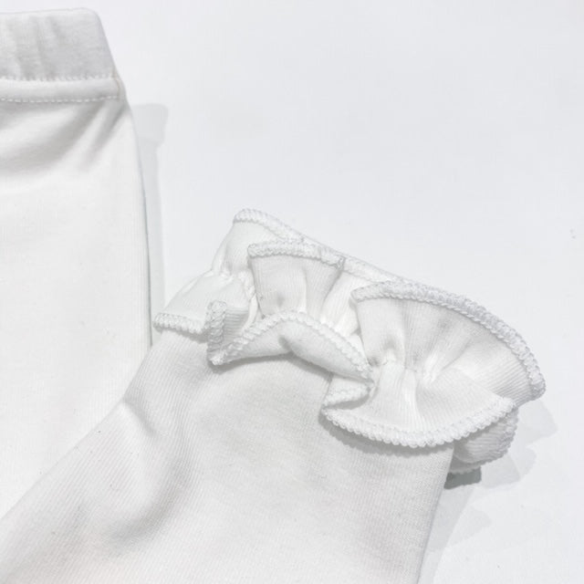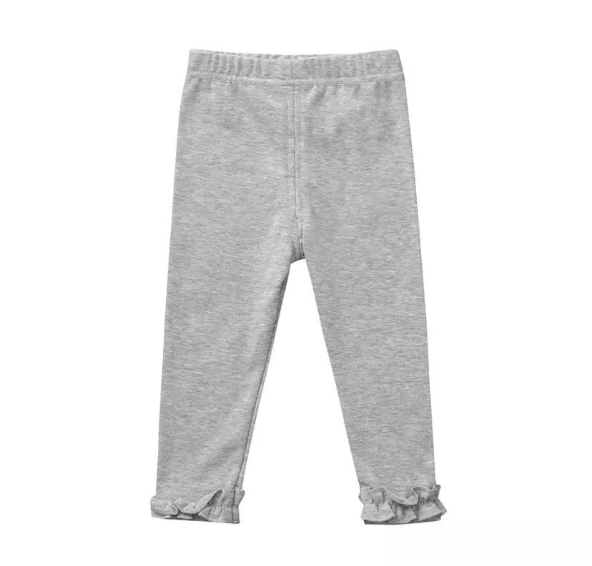 Description: Cotton leggings with an elasticated waist and a cute frilled ankle detail. Available in grey or white.