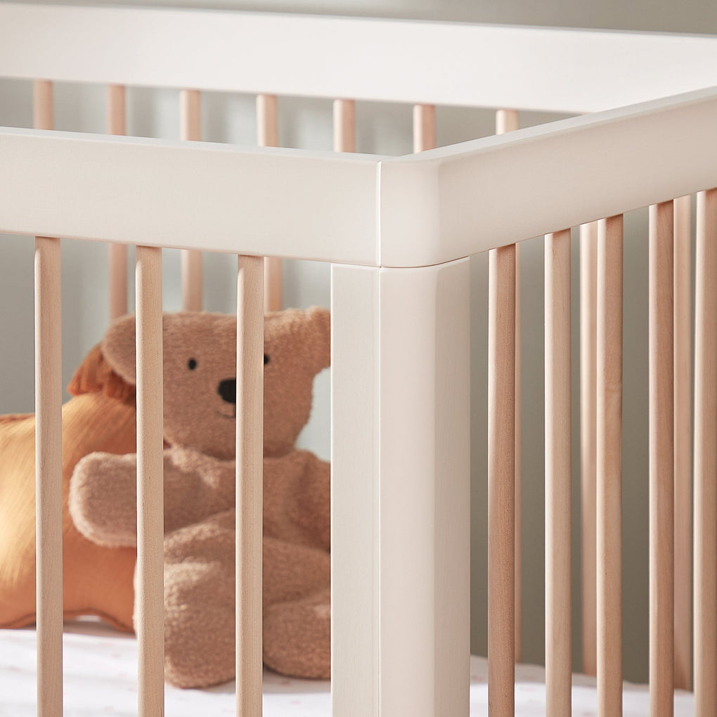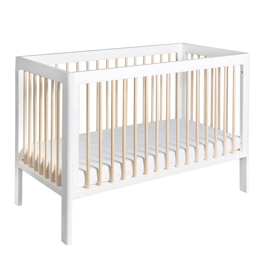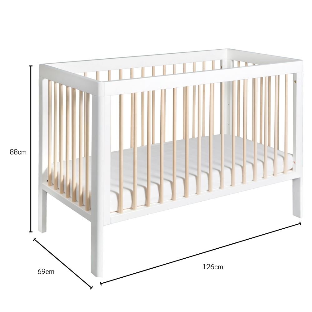 This scandi cot design is crafted from 100% solid birch wood and finished to high standard with water based paints. There are 3 base positions so that the mattress can be lowered as your baby grows.