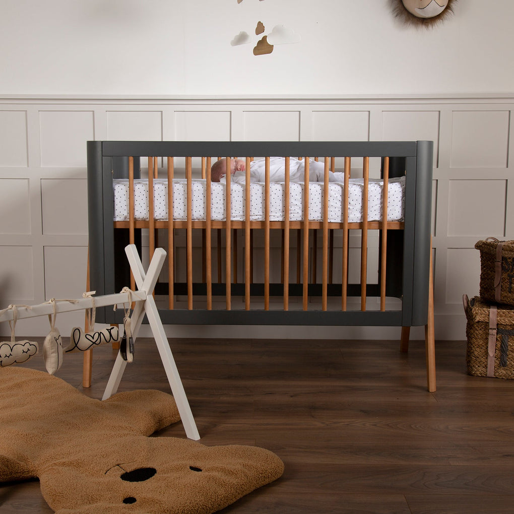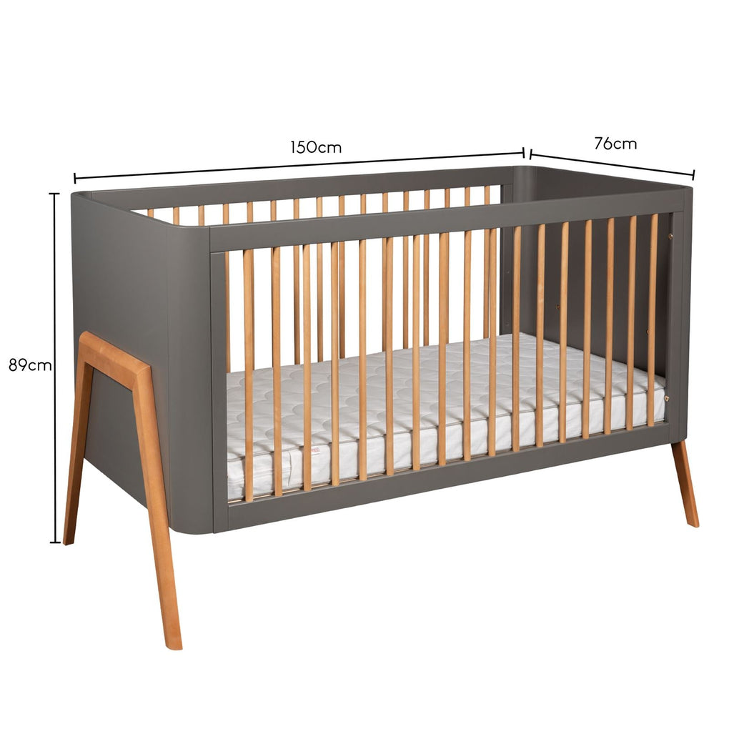 The bold colour palette of dark grey with teak wax gives any nursery a beautiful contemporary look you've been waiting for.