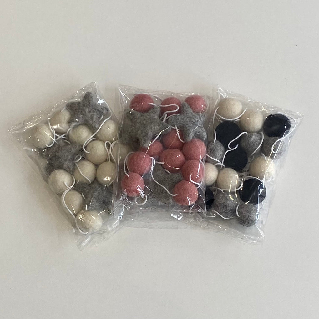 Description: Felt fabric stars and pom poms measuring approximately 2cm diameter in a range of colour combos to add a little extra decor detail to any room.
