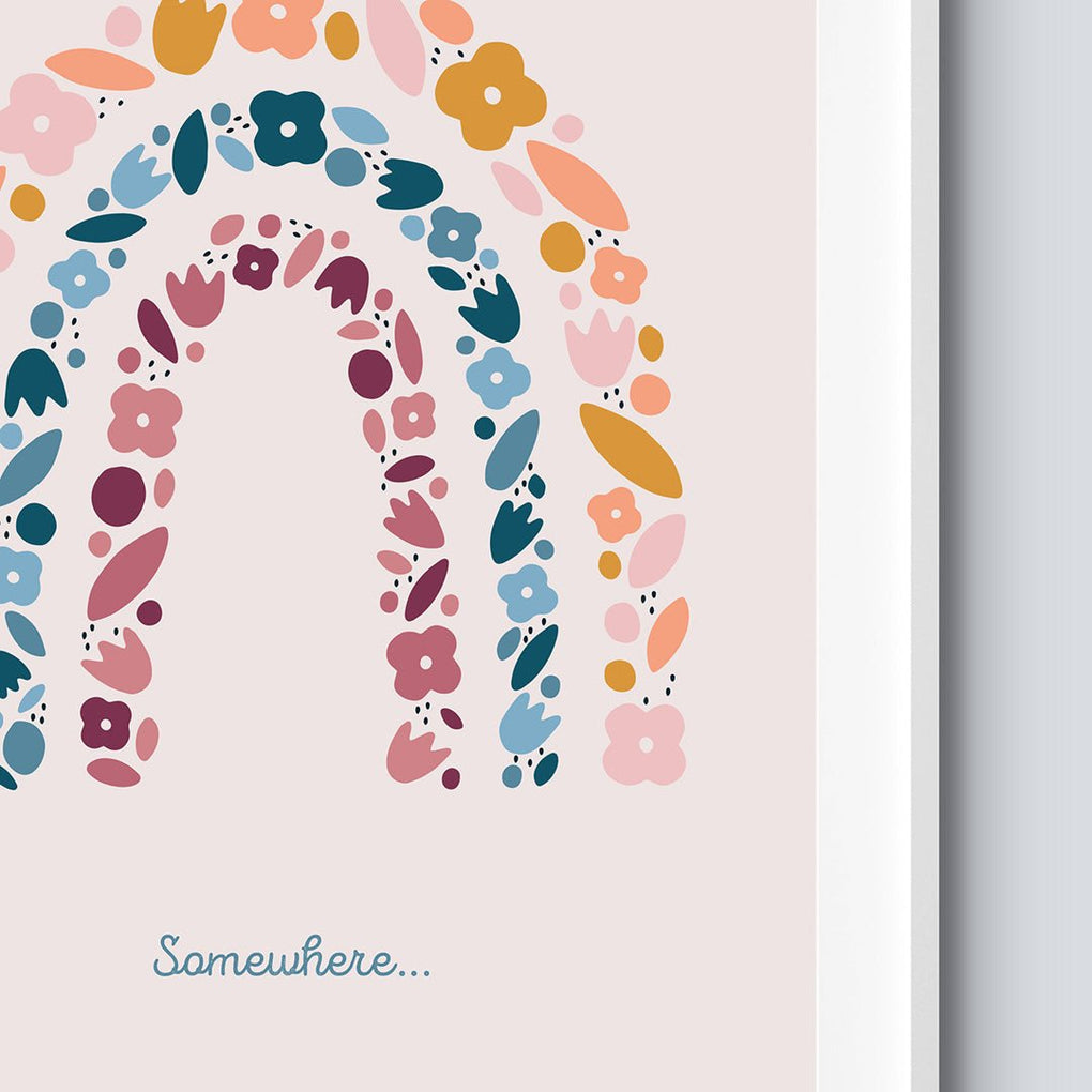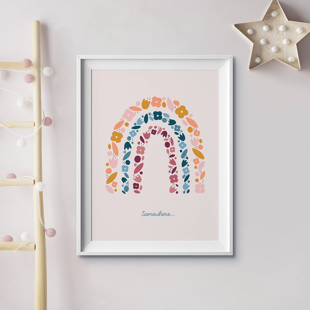 this set of 1x 'somewhere over the rainbow' and floral rainbow prints come in a5, a4 and a3. (please note the print shown in the images is not to scale)