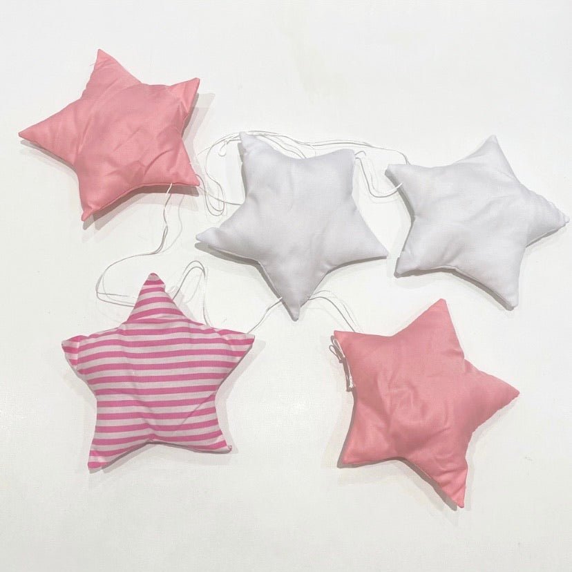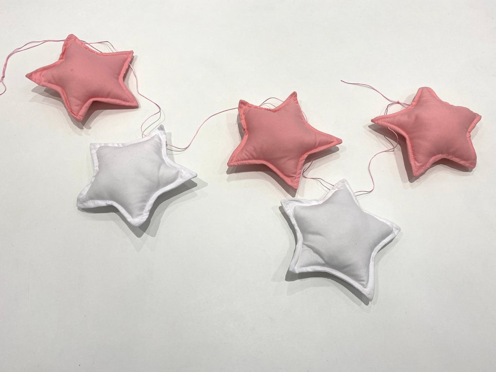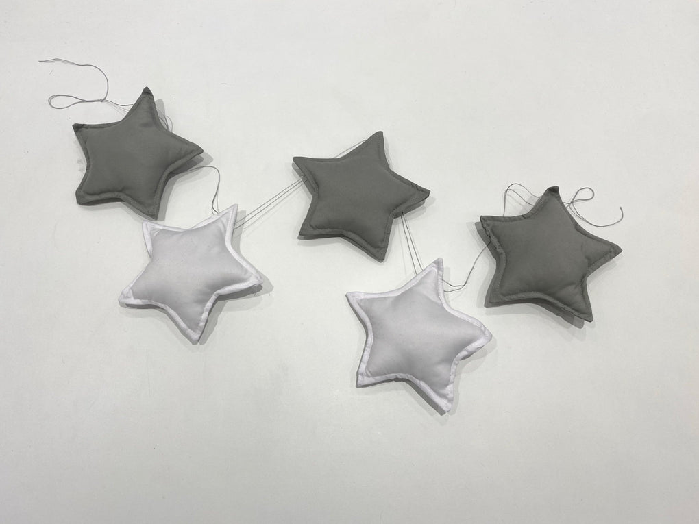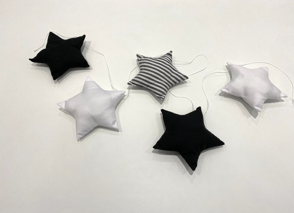 Description: 5 fabric stars measuring approximately 14cm H x 14cm W which can be moved along the thread to suit your décor style. The garland thread measures approximately 105cm long.