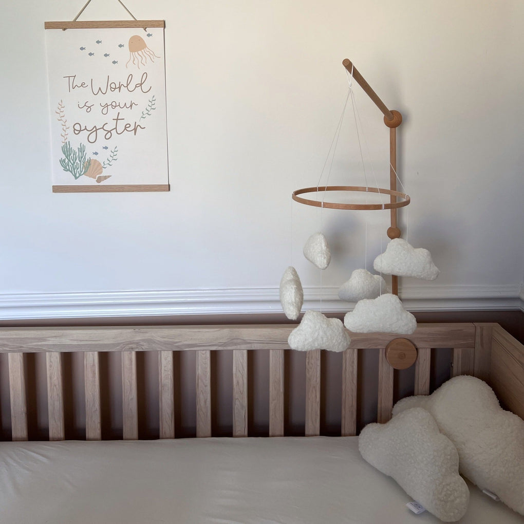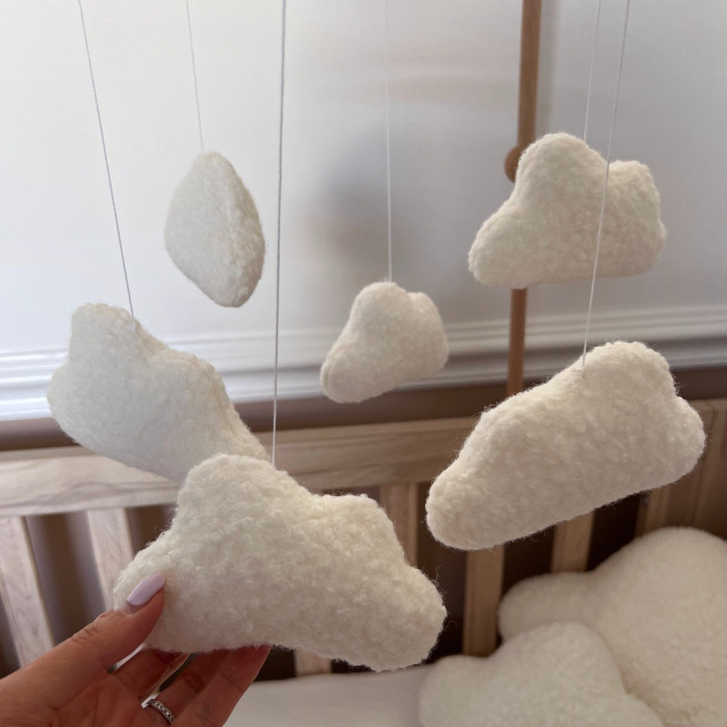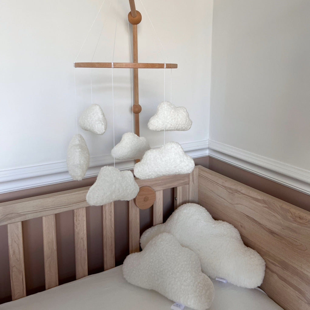Looking for stand-out cloud nursery decor? We’ve got you covered. Meet our timeless, neutral nursery decoration; the boucle cloud mobile. Featuring mini versions of our best-selling boucle cloud cushions, each mobile is delicately handmade in Yorkshire.