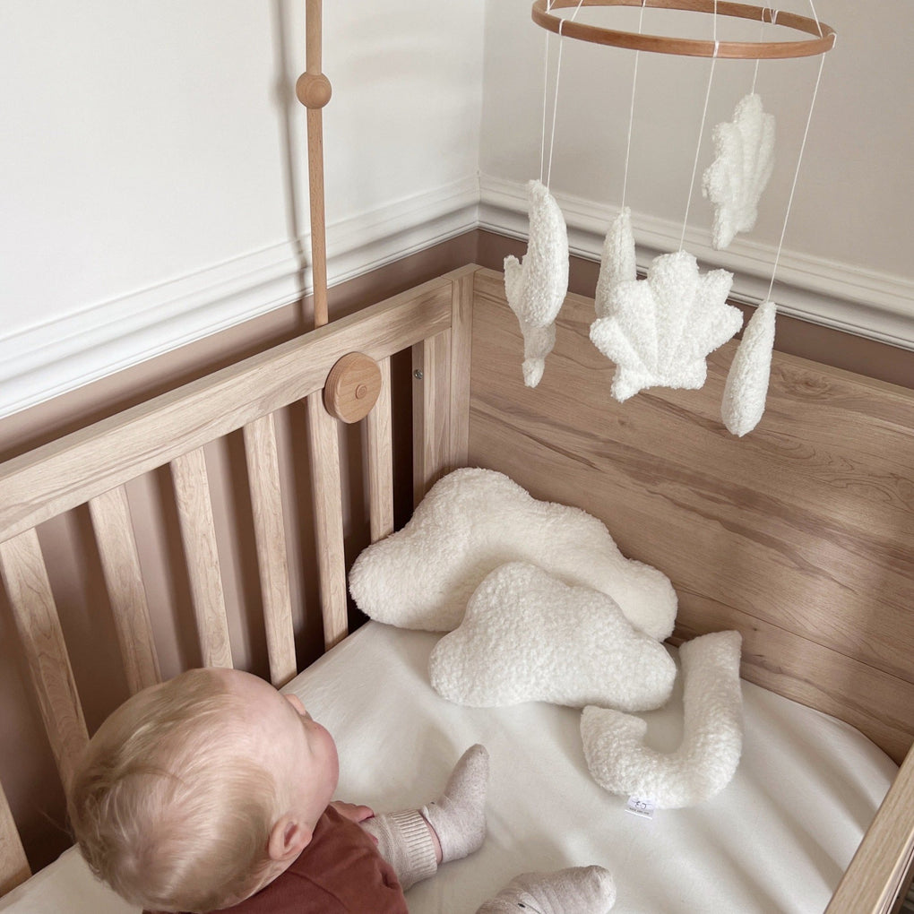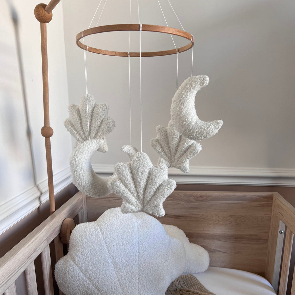 The best-selling boucle mobile by Edie and Joe just got an upgrade, meet the new nursery decoration, the shell and moon mobile. This is top-tier craftsmanship, with each mobile lovingly and delicately handmade in Yorkshire.