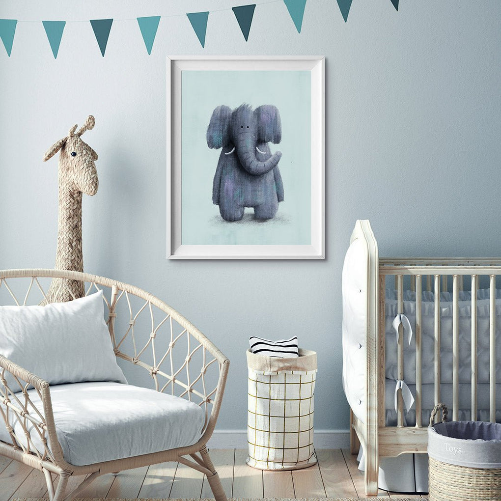 this unique illustrated elephant print is designed for those who like a more contemporary scandi or boho style and would look beautiful in a safari theme room.
