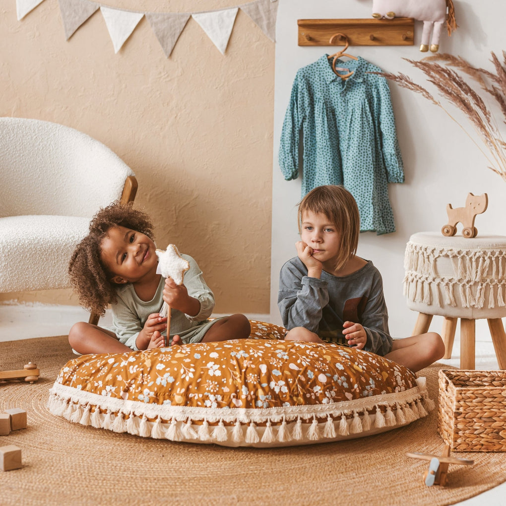 The MINICAMP Kids Floor Cushion Seating Pouffe in a vibrant Plant Pattern brings a touch of nature-inspired style to your child’s room or play area. Perfectly sized for kids, this cushion creates a cozy spot for play, reading, or lounging.