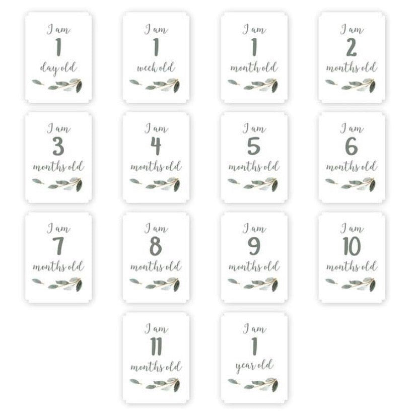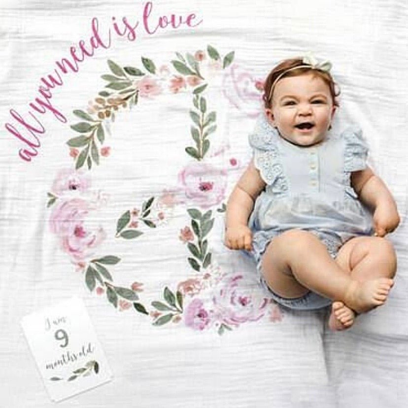 This set includes 1 muslin blanket and 7 double-sided cards with 14 milestones. Perfect for the modern day social mum. The muslin blanket and card combination makes the perfect prop for baby photos. Create beautiful keepsake photos, track baby's growth during the first year, and add other props and toys for a personal touch. Can also be used as a swaddle, baby blanket and nursing cover.