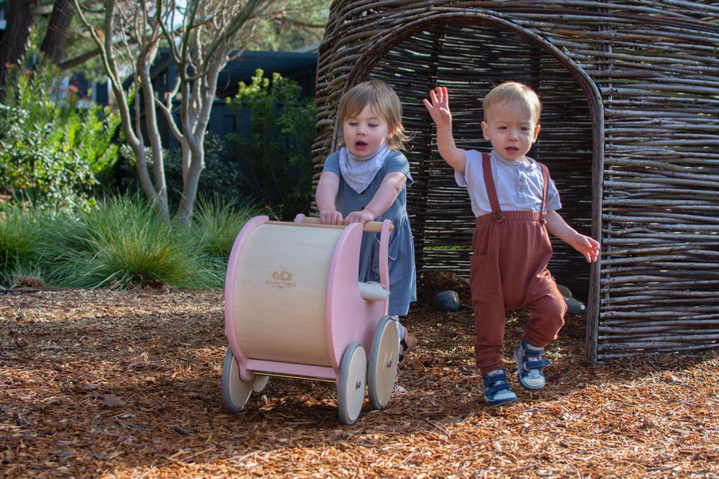 it’s a toy that doubles as two - any tiny tot’s dream come true! Serving as both a storage space for stuffed animals or dolls and a baby walker for newly-mobile little ones, the pram 2-in-1 walker is a perfect way to encourage your baby to take their first steps and enjoy adventures on their own two feet. Once your child is comfortable walking, easily remove the walker’s pegs - turning it into a pram that can store toys, stuffed friends and dolls!