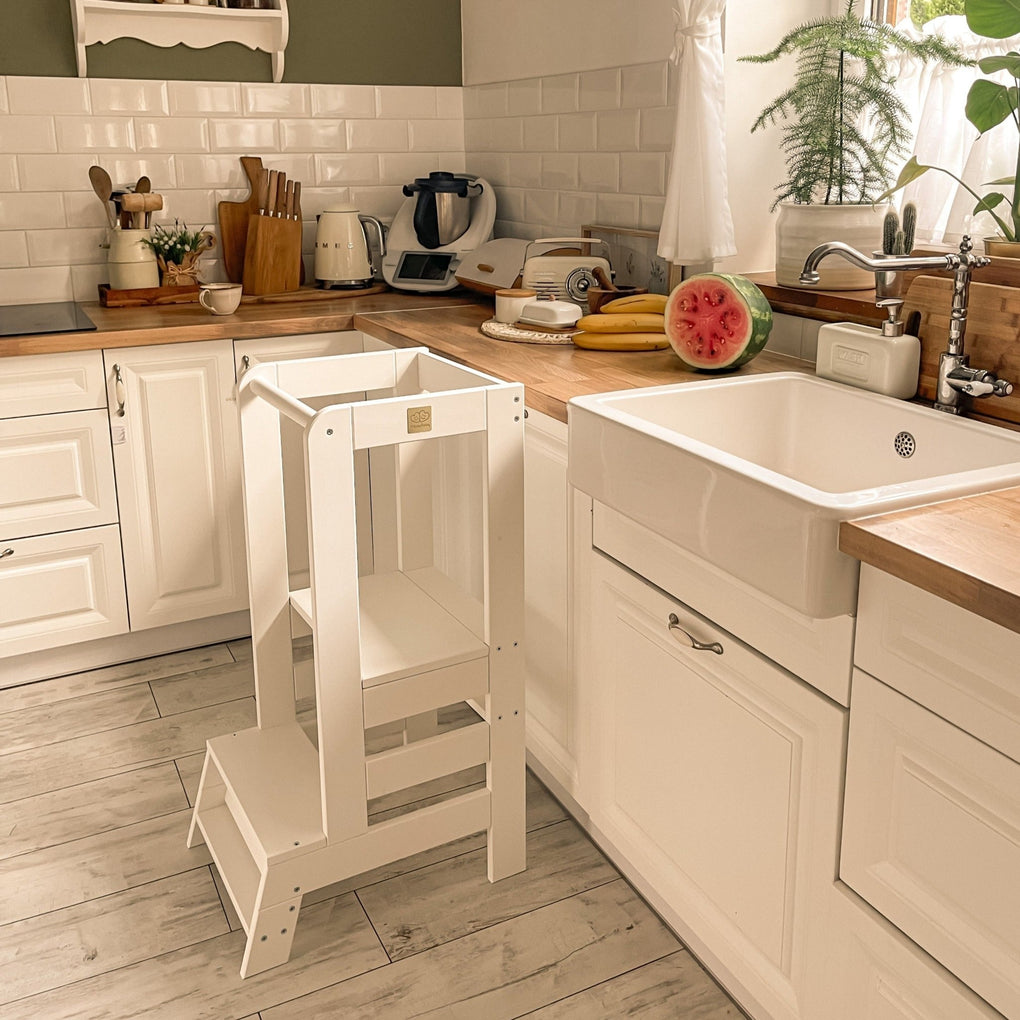 The kitchen helper enable you to share precious moments together in the kitchen. Gone are the days of having your toddler stand on a chair or sit on the table or counter. Make sure that your child is safe while cooking together and strengthen their sense of independence.