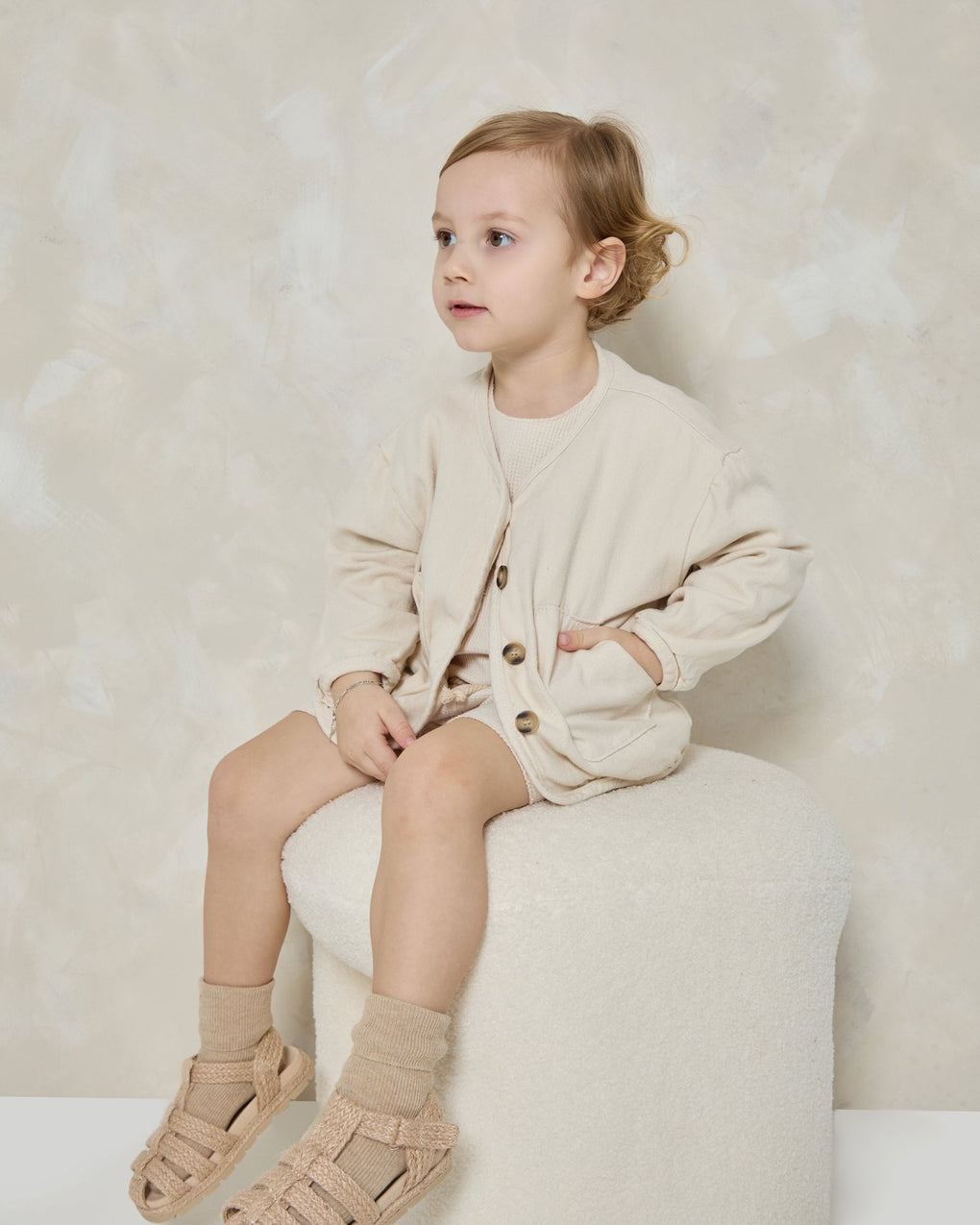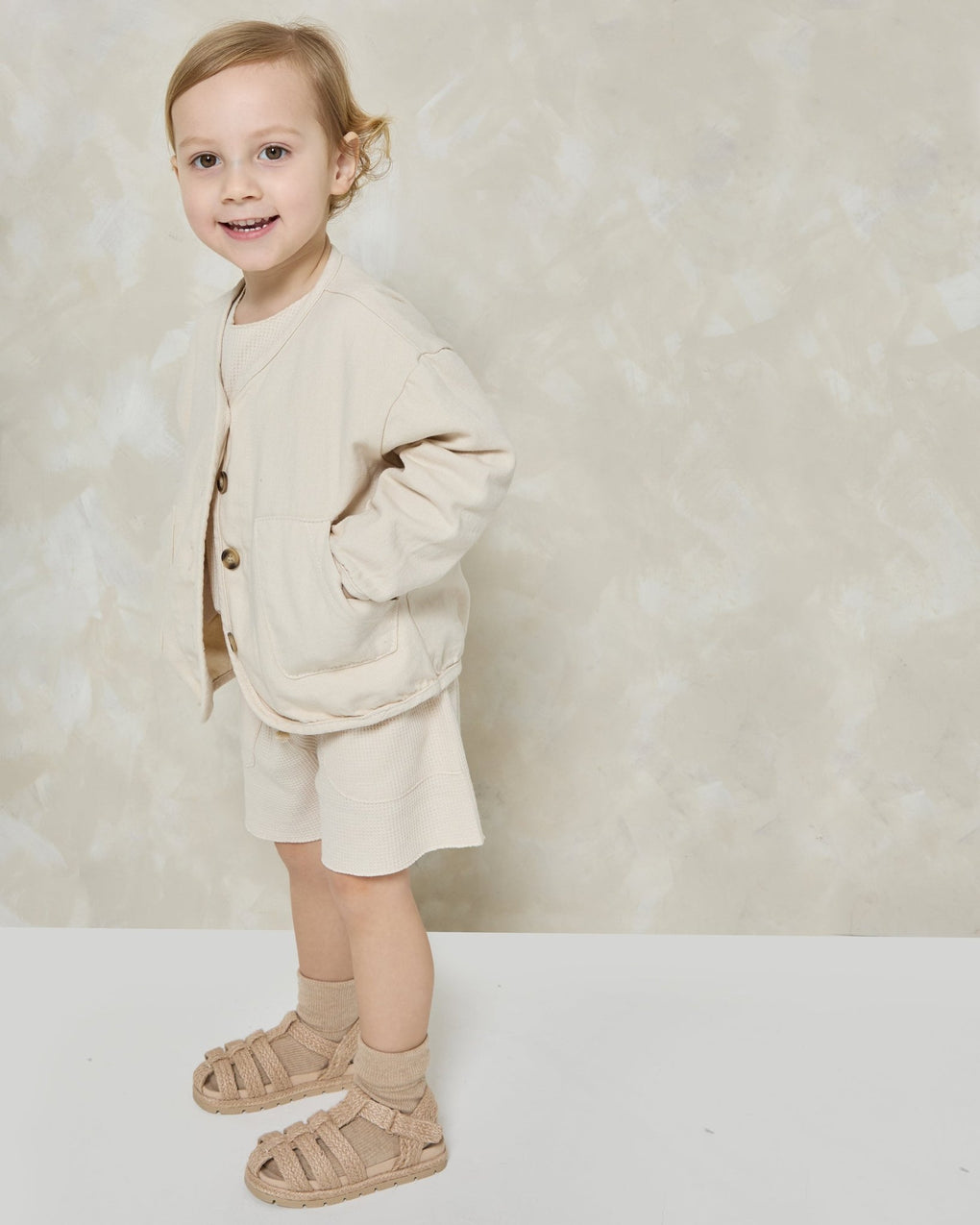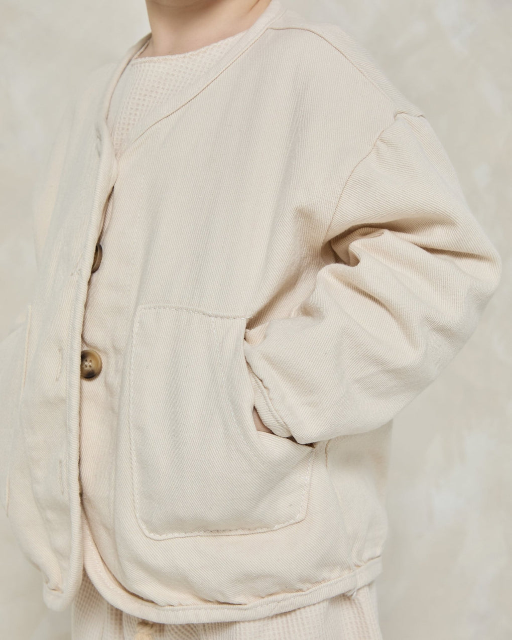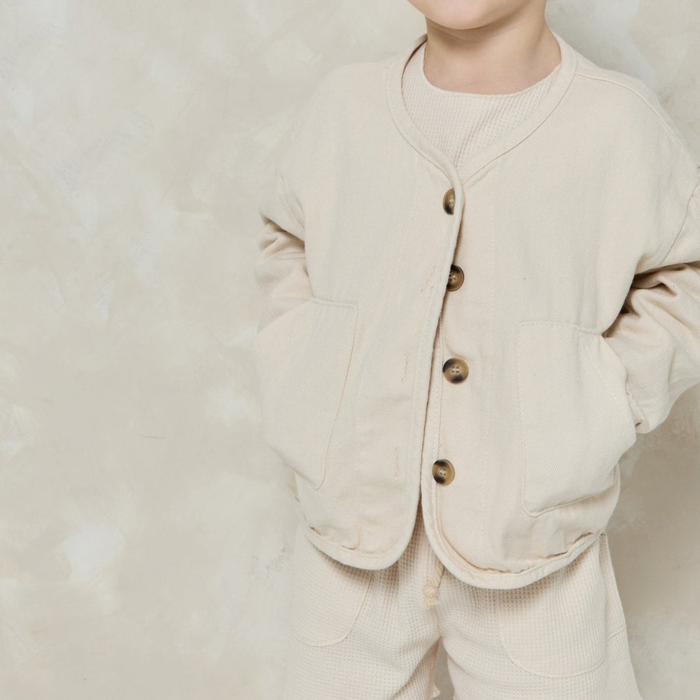 This cute summer jacket is the perfect jacket for spring/summer. Designed from a lightweight material, that's soft on the skin and finished off with edge piping, this jacket is the perfect styling pieces for you mini's this season.