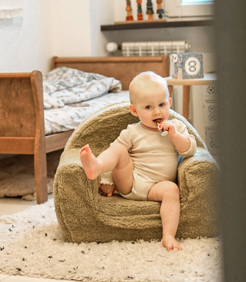 Soft and comfortable, this armchair for children is suitable from 9 months. The armchair is made from high-quality foam and the cover is made from boucle fur fabric.