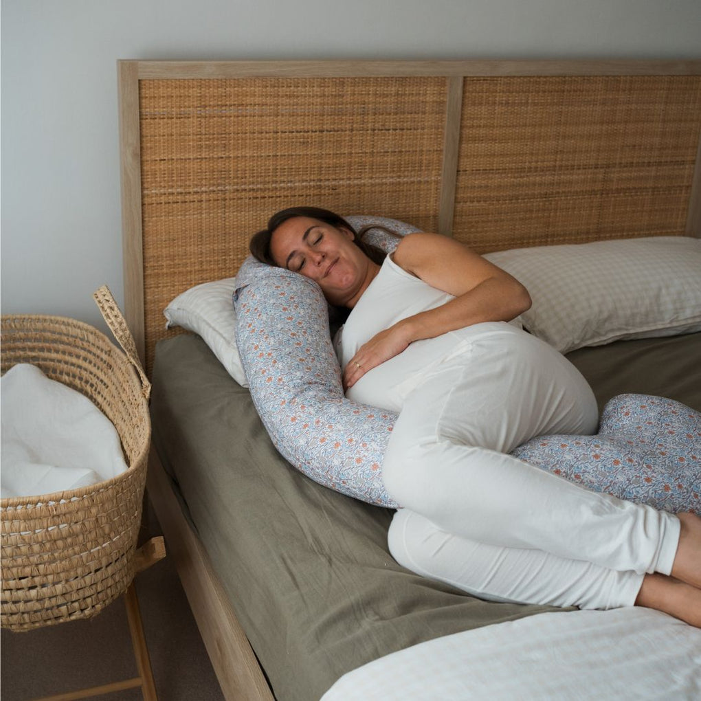 our c-shaped pillow measures 1. 4m in length and is designed to elevate your limbs, to separate your hips and allow your body to adopt a neutral sleeping position during pregnancy.