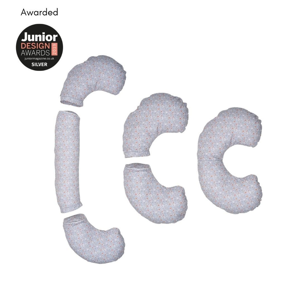 our 3-in-1 pillow has been specifically designed to last from pregnancy until baby is over a year old. Its unique modular design allows this pillow to be reconfigured for use during pregnancy, breastfeeding and baby development - giving parents that desired extended use.
