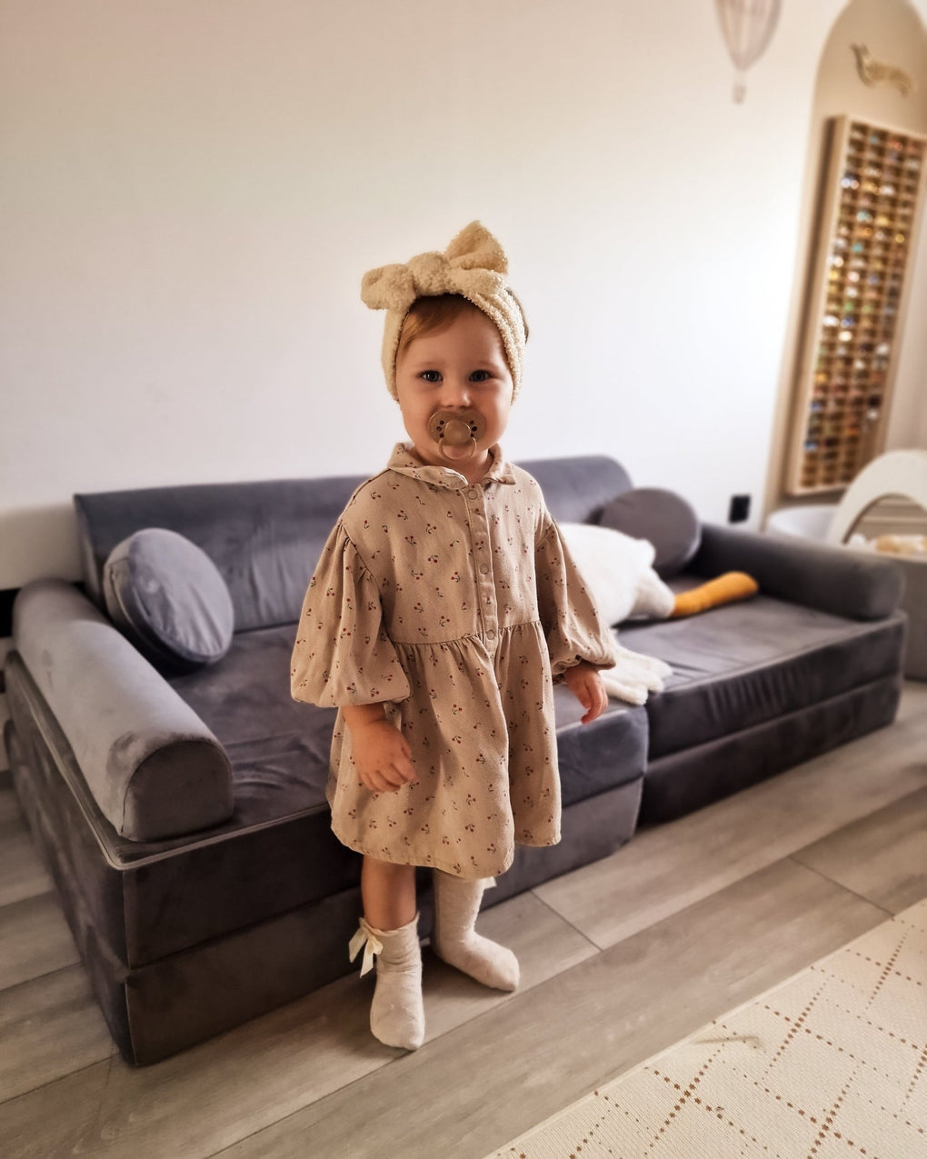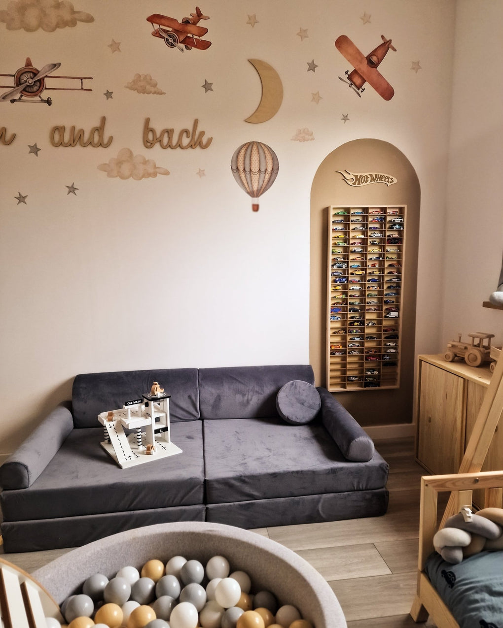 Additionally, the sofa comes with two small poufs that can be used as support during playtime. They are not only an additional decorative element but also functional accessories that enhance the joy and convenience of using the sofa.