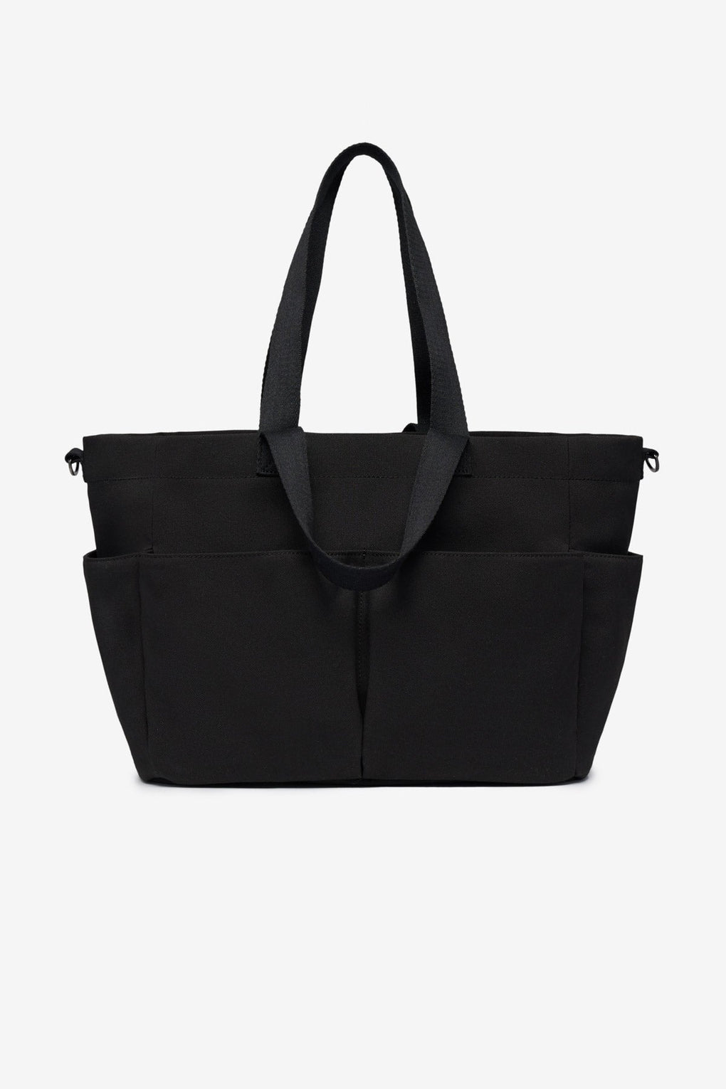 introducing our new highly-packable, effortlessly cool carry-all tote. Crafted from 100% recycled polyester derived from end-of-life textile waste, this multi-pocket tote is perfect for either clipping to your buggy for easy reach organisation (stroller clips can be purchased) ,for nonchalant hangs - using either one of its three (yes 3! ) strap options, or can be stashed under your buggy in the underseat basket ready for action. Consciously designed with an un-lined, fuss-free interior to offer maximum space with huge packing potential, and as a lighter-weight adaptable bag option for parenting and beyond. Its minimal aesthetic is deceptively useful - externally the tote features 6 spacious slip pockets that can organise (aka hide! ) all your parent and baby essentials, as well as hosting an internal drop pocket and key fob. Gunmetal hardware has been applied for an elevated finish - this totes understated design has lux undertones and useful function. Co-ordinating item available: the t+m canvas caddy organiser has been designed so it can slot inside the canvas pocket tote. Utilising clever, modular design so you can max out your tote interior, double your function and carry your caddy in style.