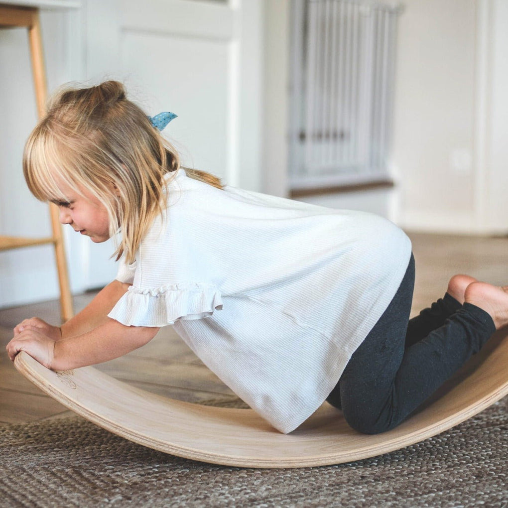 A wooden balance board, which will help improve balance and motor skills in little ones. With unlimited possibilities of creative play and exercise, the balance board makes the perfect gift.