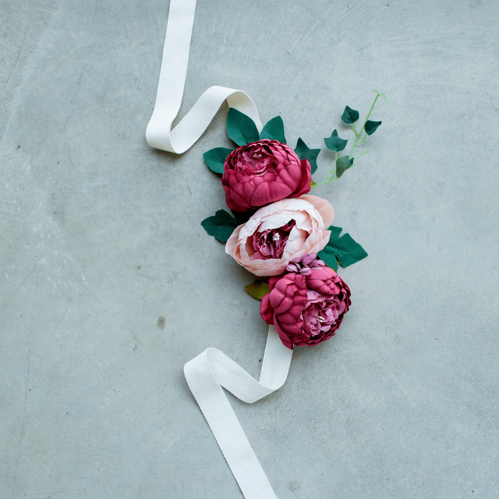 The garland measures 8 inches (20 cm) in length, excluding the ribbon, and is crafted from high-quality artificial flowers. Each piece is handmade, so slight variations may occur, making every garland unique.