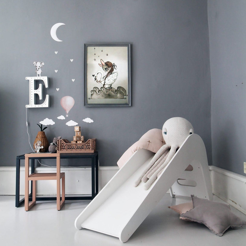 The Jupiduu slide is designed for living spaces and is the perfect accessory for stylishly furnished children’s rooms. Its attractive, modern design and its fresh, cheerful pastel colours are guaranteed to brighten ones mood. The slide can be placed outside in fine, dry weather but also at any other time. With a slide length of approx. 1.20m, it is the ideal toy for little slide lovers from 1.5 to 4 years of age. The special child-friendly steps ensure safe and easy climbing. The high sides on the Jupiduu slide ensure good stability when sliding.