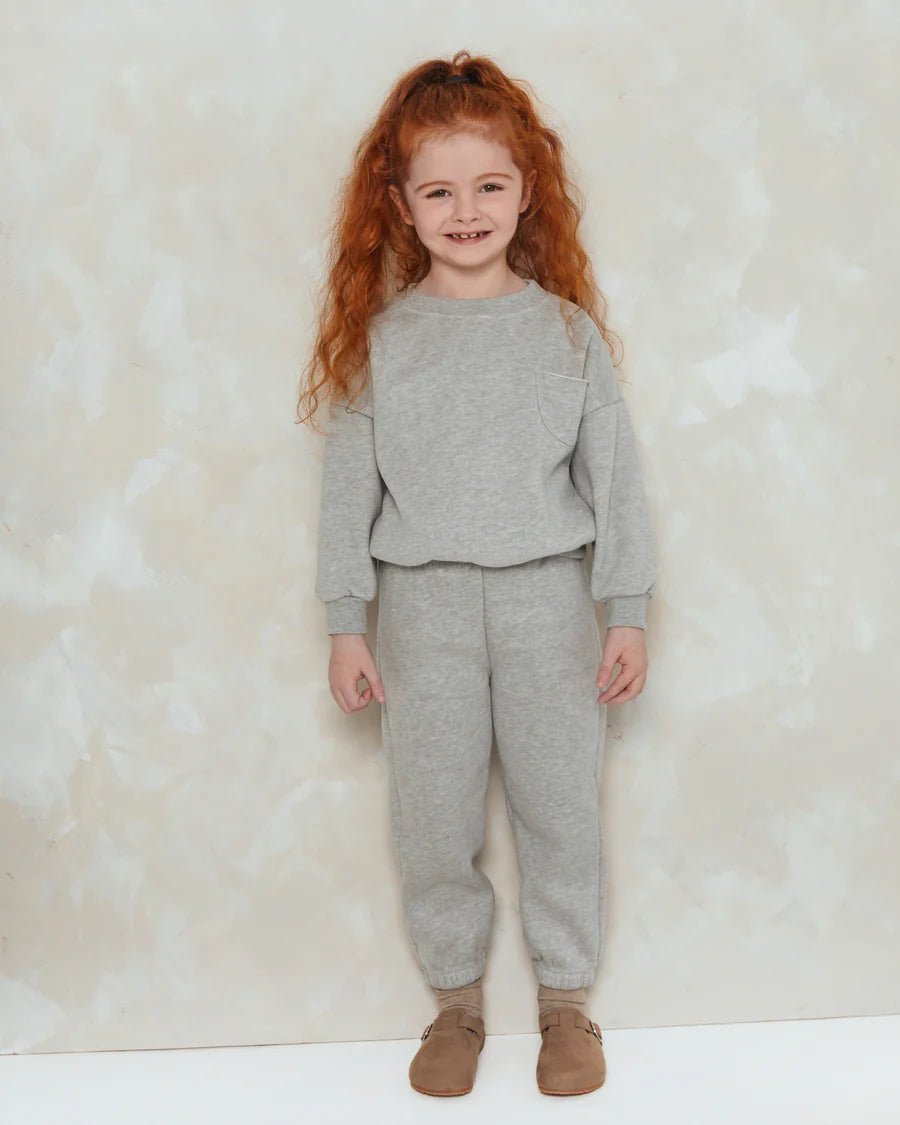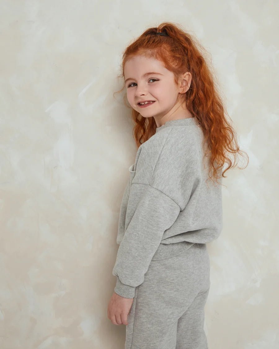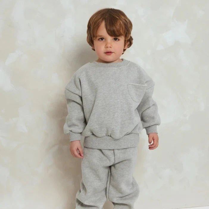 This beautiful super soft set by Mini Mal consists of a stylish boxy sweater with raw hem pocket and ribbed trim whilst our matching joggers are designed with an elasticated waist and cuffs for the perfect fit.
