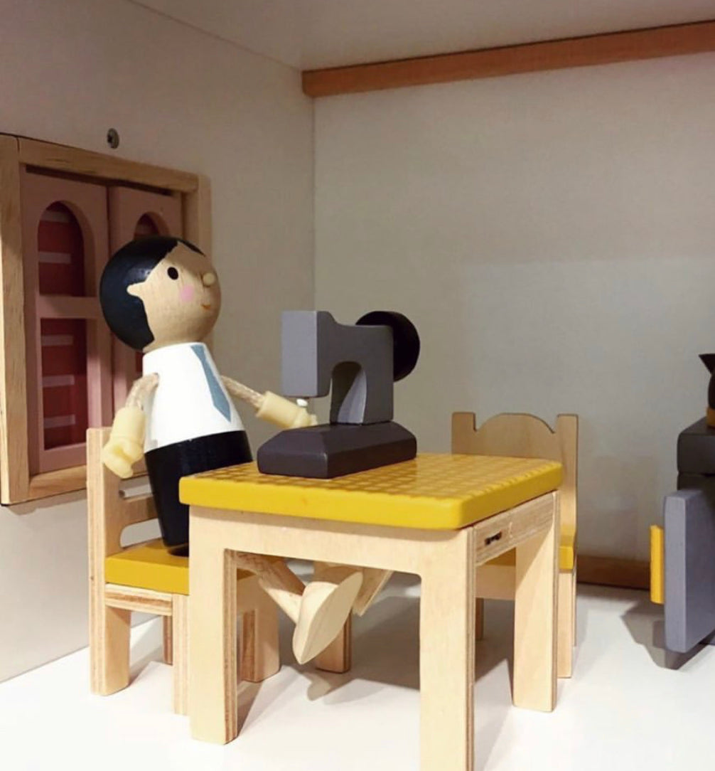 a wooden family with flexible arms and legs, mum, dad, little girl and little boy.