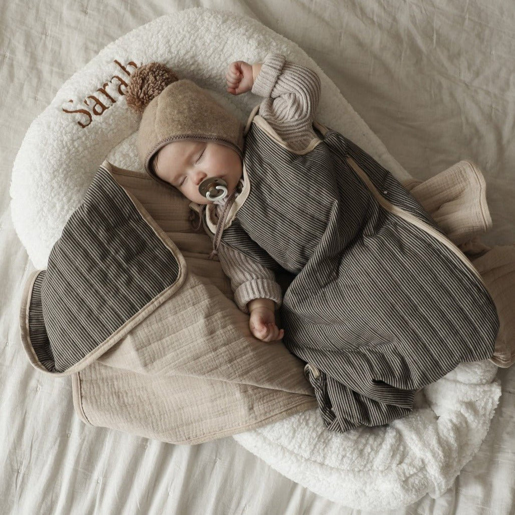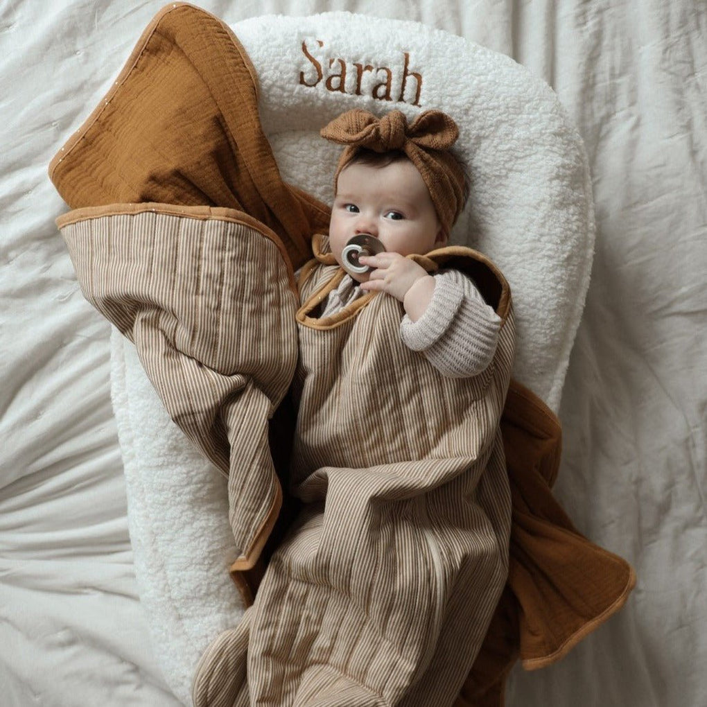 This beautiful personalised baby nest by Muzpony is the perfect new baby gift. Embroidered with baby's name gives that extra peresonal touch.